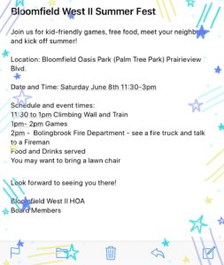 Gallery Bloomfield West II Bloomfield West II Christmas 2021 Bloomfield West II Summer Event Bloomfield West II Community Garage Sale Bloomfield West II Summer Event Bloomfield West II Summer Event Load More
